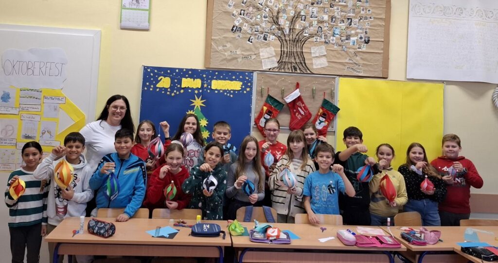 Radionica je poticala maštu, strpljenje i suradnju, a učenici su s ponosom predstavljali svoje radove – maštovite kuglice od šarenog papira kojeg su ukrašavali vrpcama i neizostavnim šljokicama koje su dale poseban sjaj cijelom razredu. Svaki ukras nosio je osobni pečat svog malog autora, što će obiteljskim borovima podariti jedinstven i topao izgled.