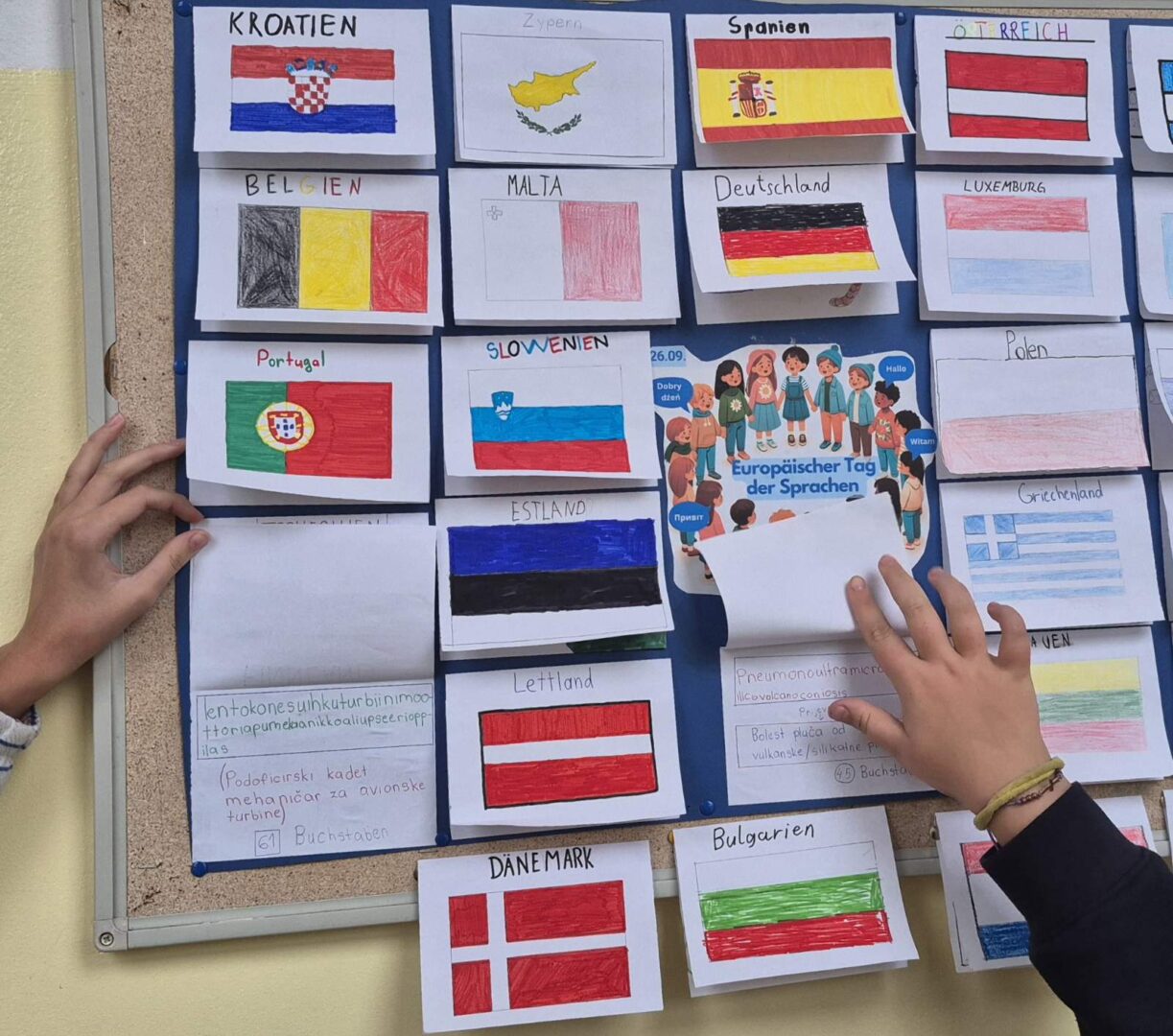 6. razredi su izrađivali kartice država te su za svaku državu tražili najdulju riječ u tom jeziku, potom su riječi napisali u svoju karticu uz odgovarajući prijevod I broj slova u toj riječi te su nacrtali zastavu te zemlje;