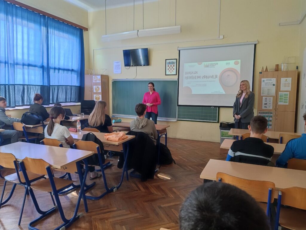 Djelatnice Obiteljskog centra Koprivnica, Tanja Bakliža, mag.psych. i Petra Kušević, mag. paed.soc., održale su interaktivna predavanja za učenike 7.a, 7.b i 8. razreda, tijekom kojih su s učenicima razgovarale o temi mentalnog zdravlja. Kroz otvoren dijalog i primjere iz svakodnevnog života učenici su imali priliku bolje razumjeti vlastite emocije, načine nošenja sa stresom te važnost traženja podrške kada im je potrebna. Razvijanje svijesti o mentalnom zdravlju u ovoj dobi posebno je važno jer doprinosi jačanju samopouzdanja, otpornosti i zdravih obrazaca ponašanja koji su temelj za njihov daljnji osobni i socijalni razvoj.