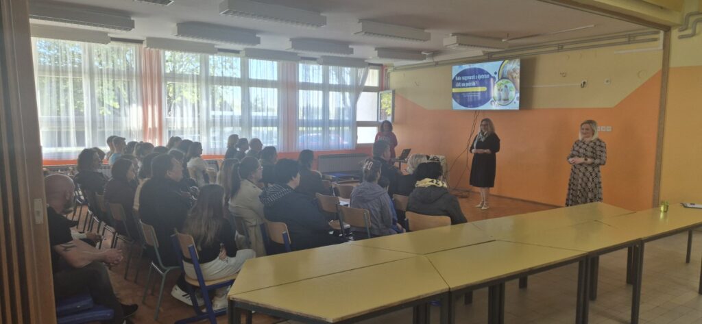 Posebna pažnja posvećena je i roditeljima, koji imaju ključnu ulogu u očuvanju i unaprjeđenju mentalnog zdravlja djece. U suradnji s Centrom organizirano je predavanje za roditelje učenika viših razreda pod nazivom „Kako razgovarati s djecom i biti im podrška“. Silvija Čavić, prof. psihologije  i Jelena Jug, dipl. soc. radnica naglasak su stavile na važnost kvalitetne i otvorene komunikacije, aktivnog slušanja te stvaranja odnosa povjerenja. Roditelji su dobili korisne smjernice i konkretne alate koji im mogu pomoći u svakodnevnim situacijama, osobito u razdoblju odrastanja koje donosi brojne izazove.
