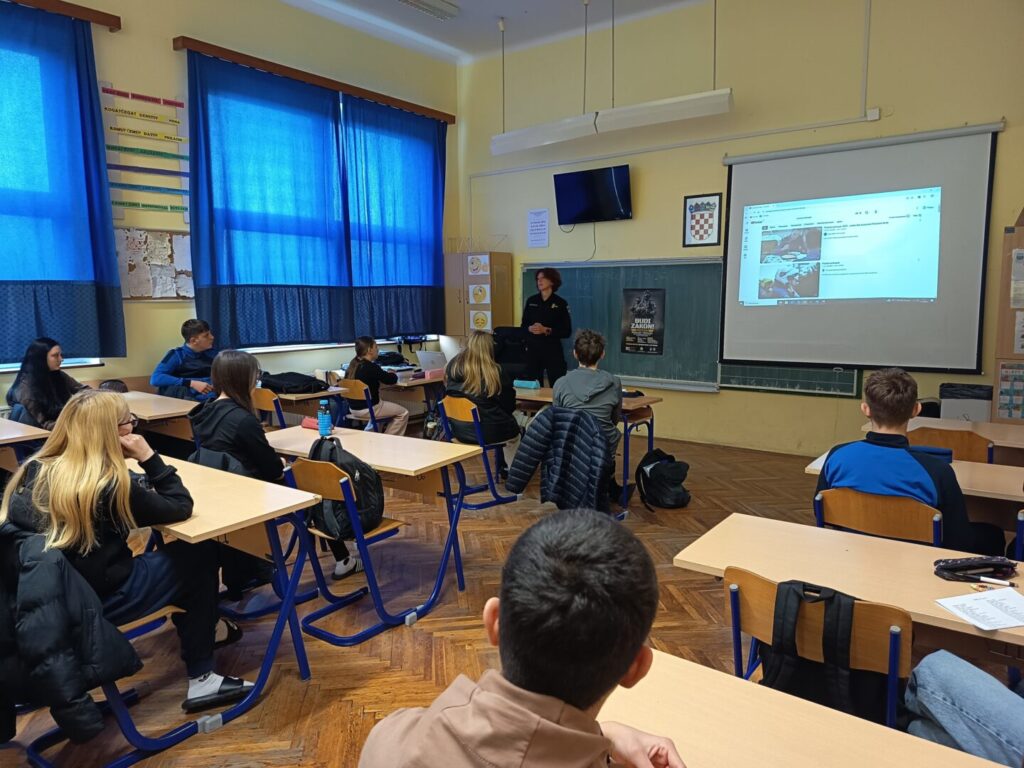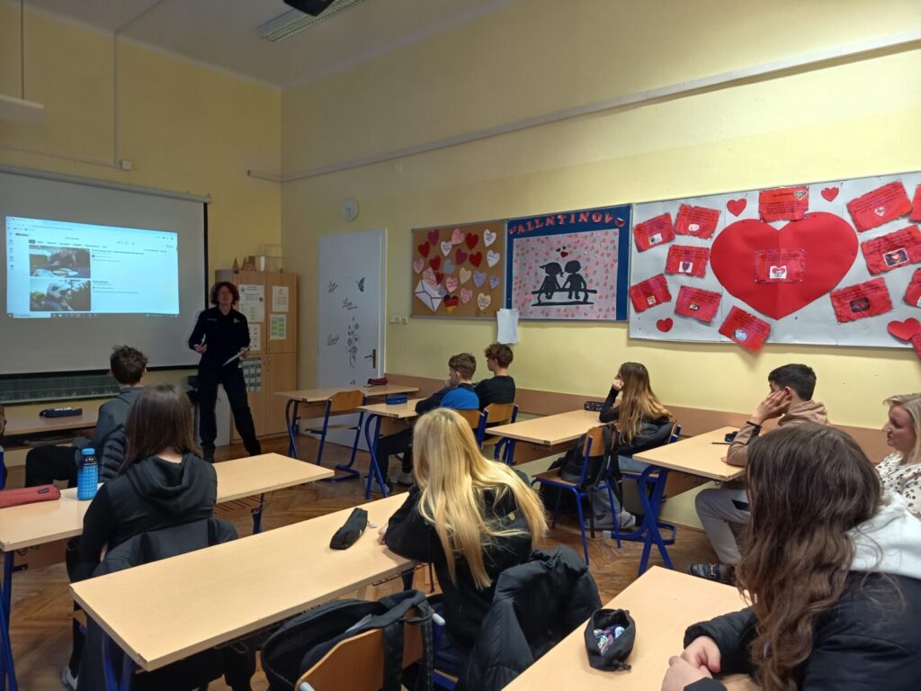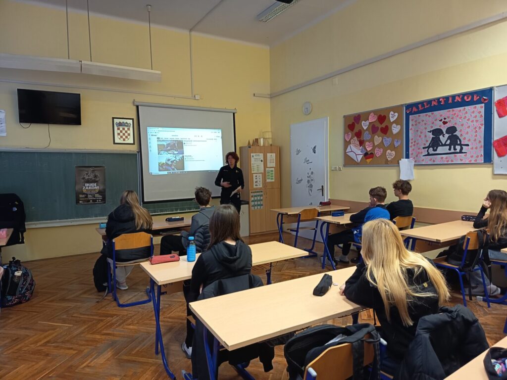 Policijska službenica podijelili je svoje iskustvo o završetku policijske škole i studija kriminalistike, te se osvrnula na različite poslove s kojima se susretala tijekom svoje karijere. Učenici su pažljivo slušali cijelo predavanje te pokazali veliko zanimanje za zanimanje policajac/policajka. Završne minute predavanja učenici su iskoristili za postavljanje pitanja našoj predavačici.