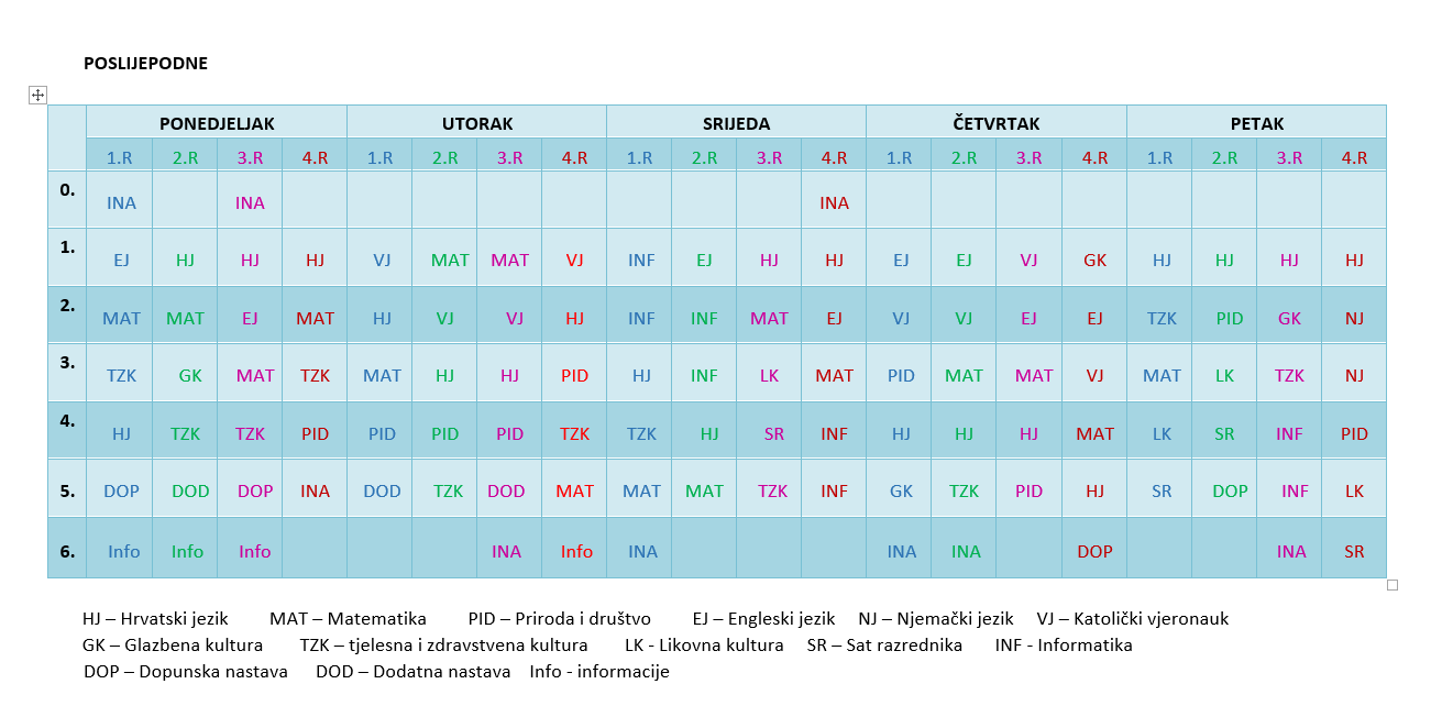 Raspored sati – predmetna nastava